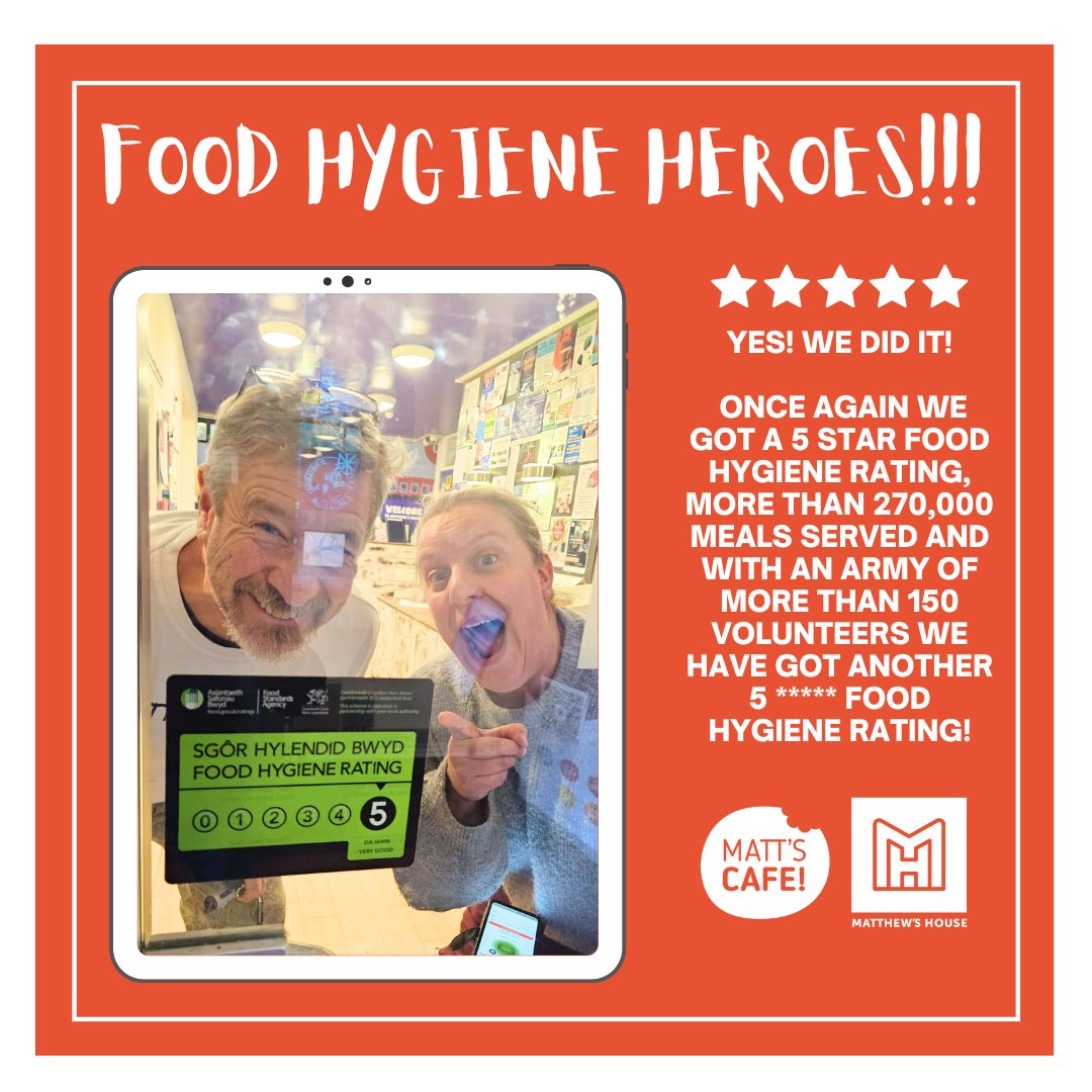 We are thrilled to announce that Matthew’s House has once again received a 5 Star Food Hygiene Rating, our sixth top rating in just eight years.
