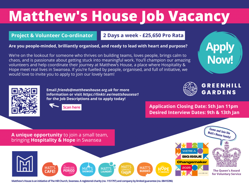 News We Are Recruiting at Matthew’s House – Volunteer & Project Co-ordinator Application Opens December 8th! Matthew’s House is excited to announce an important opportunity for someone to join our core…Thom Lynch26th November 2025